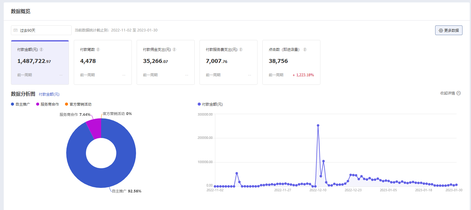 ▲店鋪后臺(tái)銷售數(shù)據(jù),由火蝠電商提供