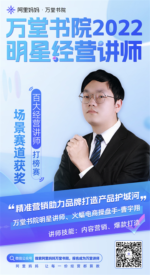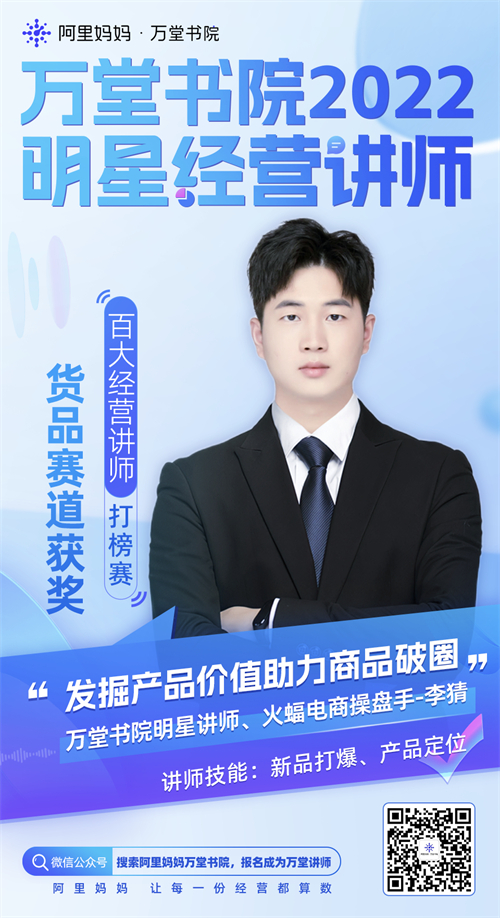 此次萬堂書院經(jīng)營講師年度大會上,萬堂書院向人群、貨品、場景、行業(yè)四大賽道的獲獎明星講師頒發(fā)榮譽證書,并揭曉新年度的認證講師名單。其中,火蝠電商操盤手李猜獲「貨品賽道」冠軍、火蝠電商操盤手曹宇翔獲「場景賽道」亞軍、火蝠電商數(shù)據(jù)運營專家呂金彥獲「人群賽道」亞軍。