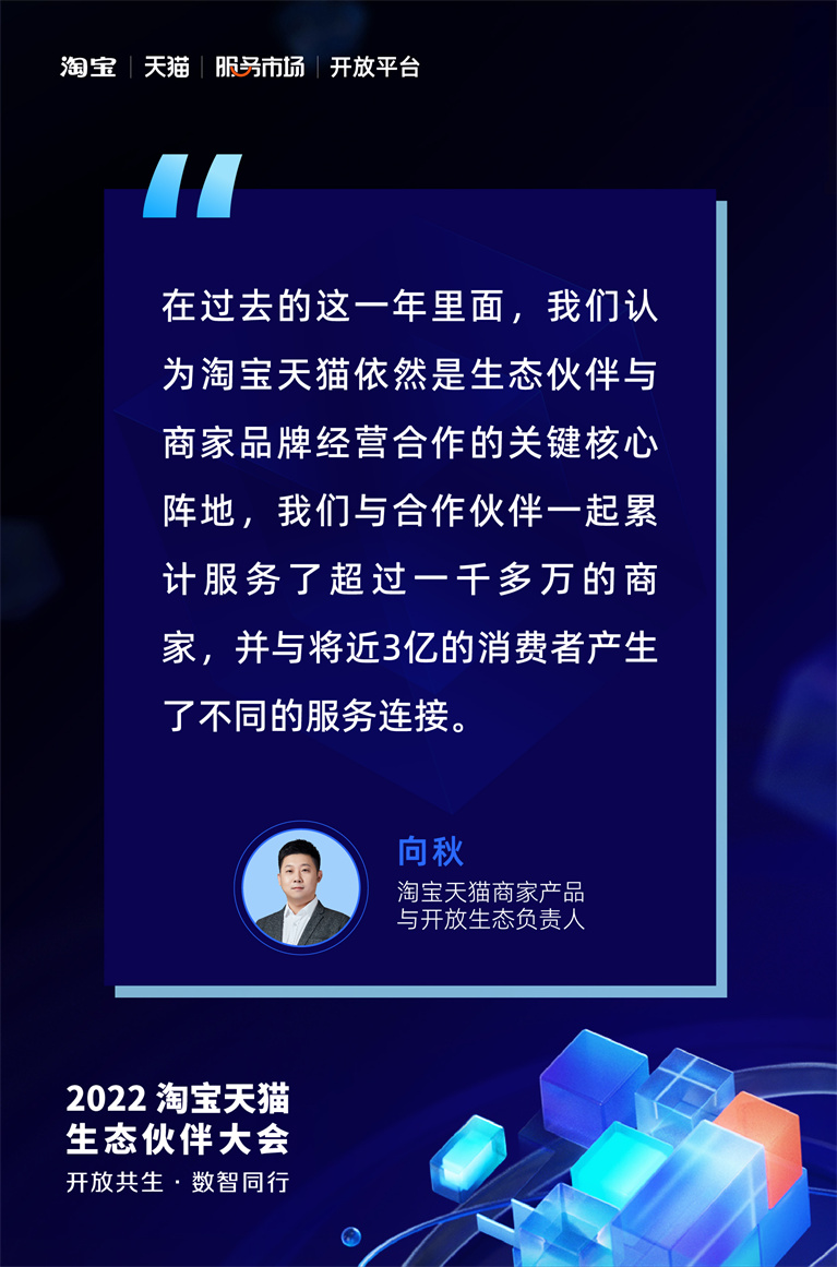 在生態(tài)伙伴大會上,會議陸續(xù)從“共贏、引領(lǐng)、見證”的關(guān)鍵詞出發(fā),探討了淘寶天貓開放生態(tài)的新方向與新策略,并結(jié)合未來趨勢分享了淘寶小程序的新賽道與新機會。淘寶天貓商家服務(wù)與服務(wù)市場負責人南蘭提出電商服務(wù)已經(jīng)進入“精細化時代”,希望代運營服務(wù)商都可以參與到內(nèi)容化的場景服務(wù)中。后續(xù)圓桌對話也將服務(wù)商的價值與機遇作為主要議題。